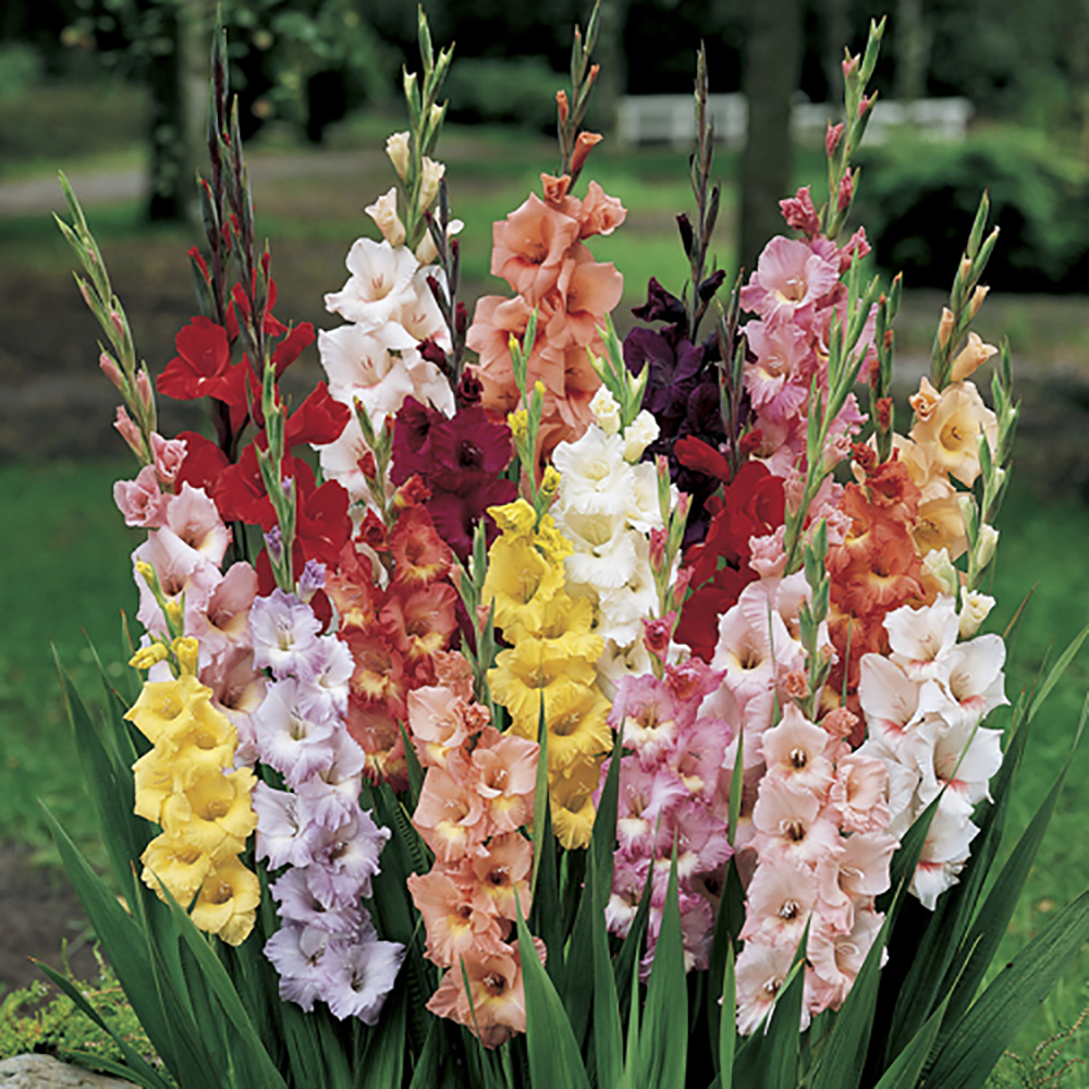 Glamorous Gladioli – Tall spires of gorgeous flowers in a sweet-shop confection of colours!